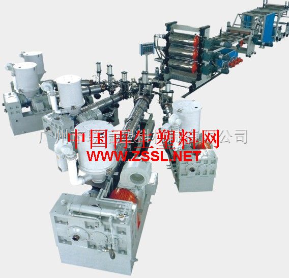 5、三棍斜45度布置塑料片、板材挤出生产线